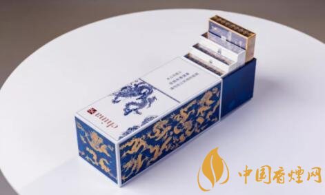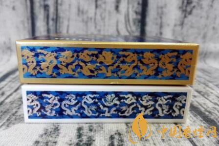 之所以此款china瓷為9+1系列,是指一條10盒香煙中,有一盒的包裝設(shè)計(jì)及口味,與余下九盒有所區(qū)別。圖片中深藍(lán)色澤包裝的,名為“龍王”。此種命名,乃是因十盒圖案皆為騰云祥龍而來。