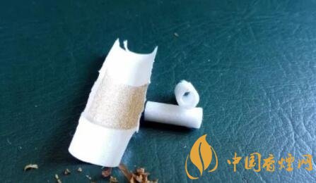 剪開鏤空樣式的過濾嘴,會發(fā)現有一層薄薄的黃色紙張,附著于過濾嘴紙張之上。鏤空過濾嘴的長度,約為6mm。