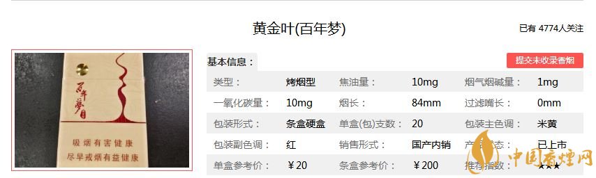 百年夢(mèng)香煙好抽嗎?百年夢(mèng)香煙價(jià)格是多少?黃金葉(百年夢(mèng))煙是河南中煙旗下黃金葉品牌推出的一款焦油含量10mg的烤煙型香煙。小編身邊有一些朋友很愛(ài)這款香煙。這款百年夢(mèng)香煙多少錢一包?抽起來(lái)口感如何?下面我們一起來(lái)看看黃金葉百年夢(mèng)價(jià)格參數(shù)介紹以及抽過(guò)的煙民對(duì)他的評(píng)價(jià)。