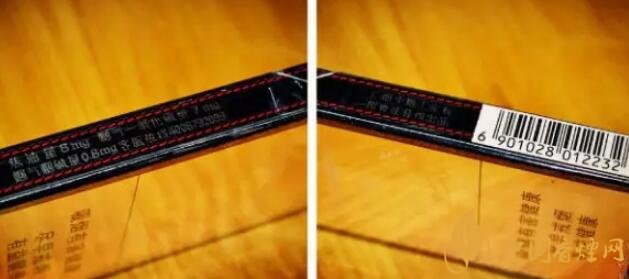 左側(cè):真龍香煙燃情時(shí)光顯示了焦油量8MG/煙堿0.8MG/煙氣7MG,細(xì)支里來(lái)說(shuō)屬于中上水平了,并有客服熱線。右側(cè)則是出品方廣西中煙和條形碼。