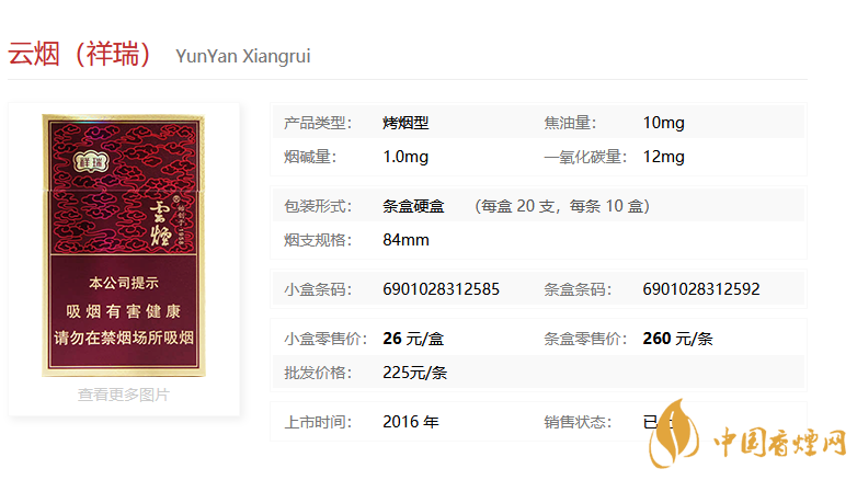 | 類型 :烤煙型 | 焦油量 :10mg | 煙氣煙堿量 :1mg | 一氧化碳量 :12mg |
