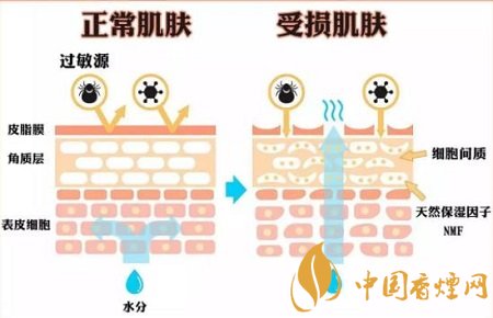 煙草里的“丙酮”,是導致皮膚敏感的罪魁禍首之一。皮膚上的油脂膜既可以阻擋外來過敏原刺激到肌膚;又能防止皮膚內(nèi)的水分被空氣蒸發(fā)。這樣才能構(gòu)建出健康的“肌膚屏障”。