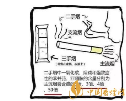二手煙亦稱被動吸煙、環(huán)境煙草煙霧、強迫吸煙或間接吸煙,是指煙草燃燒端釋放出的側流煙和吸煙者呼出的主流煙二者形成的混合煙霧,主要由吸入的方式進入人體。正因為二手煙含有一手煙所不具有的側流煙成分,這就導致二手煙化學成分的種類和含量較一手煙明顯增多,其中一氧化碳、煙堿和強致癌物苯并芘、亞硝胺的含量分別是一手煙的5倍、3倍、4倍和50倍,這也就導致二手煙的毒性較一手煙明顯增強。