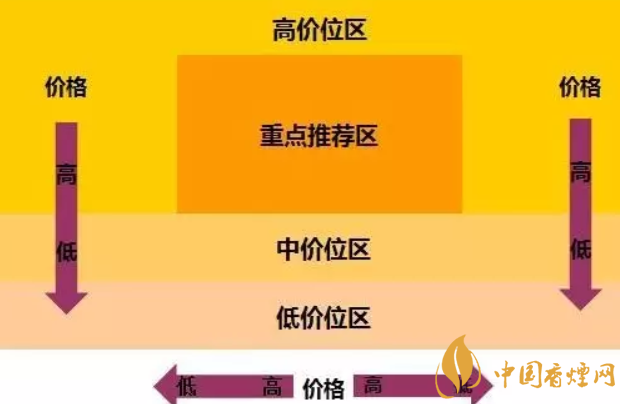 ②突出陳列原則:高價煙居中,高利潤居中,重點(diǎn)煙居中