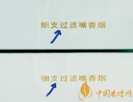 真品卷煙商標(biāo)紙采用膠印印刷,假冒卷煙多為凹版印刷。真品卷煙字體飽滿,且字體邊緣光滑,假冒卷煙字體偏細(xì),不飽滿,字體邊緣為毛刺狀。
