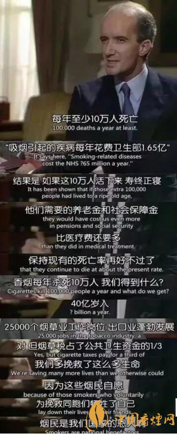 香煙行業(yè)的發(fā)展,除了繳稅方面貢獻(xiàn)極大之外,在緩解我國(guó)的社保壓力方面,也有很大的貢獻(xiàn)。給大家一個(gè)笑話,大家自己體會(huì)下,在英劇《是,首相》中,有這么一段對(duì)話,犀利而幽默: