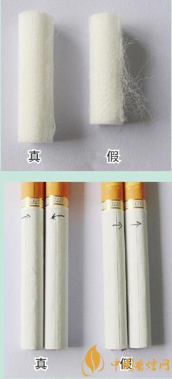 真煙過濾嘴棒長為25mm,假煙濾嘴棒則少于該長度;一盒真煙支卷煙紙的搭口有順反兩種方向,而假煙支往往只有同一方向?! ?/p>