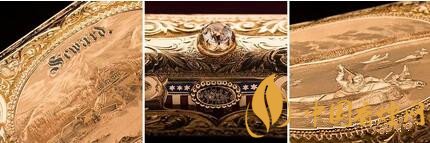雪茄盒主體由黃金制作,細(xì)節(jié)上包括刻字SEWARD,一顆寶石和美國國旗圖案,以及美國原住民婦女的狩獵場景。一筆最重要的交易,一段歷史就完整的呈現(xiàn)在一個雪茄盒上了。想要了解更多內(nèi)容請點擊:西班牙代理商推出了中國豬年高希霸生肖雪茄