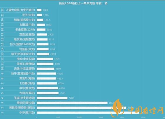 2018年,一類(lèi)煙中支體量規(guī)模并不大。但在“中華”和黃鶴樓品牌的帶動(dòng)下,一類(lèi)中支市場(chǎng)迅速擴(kuò)容。小編梳理了2018年一類(lèi)中支煙銷(xiāo)量情況,現(xiàn)截取其中銷(xiāo)量突破1000箱的規(guī)格,從中我們或許能夠看出些什么。