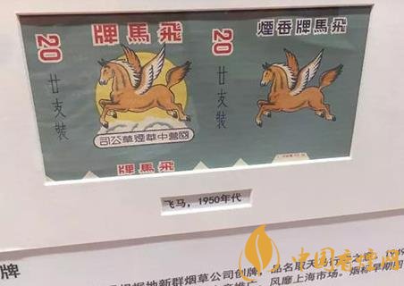 ——“飛馬”(上世紀(jì)50年代出品),1943年淮南抗日根據(jù)地新群煙草公司生產(chǎn),煙標(biāo)早期圖案為帶翅膀的飛馬?!?949年,國營中華煙草公司以“解放區(qū)名煙”對其進(jìn)行推廣,風(fēng)靡上海市場。煙標(biāo)后來改為騰空躍起的棗紅駿馬。