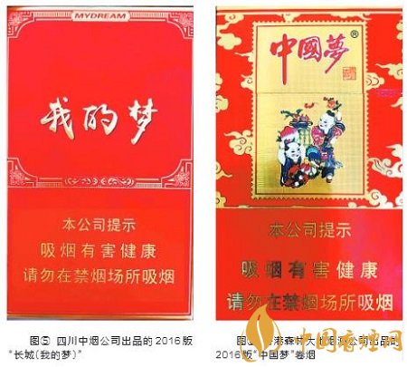 2012年11月29日,當(dāng)中國夢提出后,各地紛紛作出響應(yīng),相繼推出了行業(yè)夢與地方夢,掀起了夢想熱潮。如:強國夢、強軍夢、體育強國夢、中國航天夢、中國航母夢、河南夢、貴州夢等。煙草行業(yè)也紛紛在煙標(biāo)上表達夙愿,湖北中煙研制了“中國夢”、“黃鶴樓·百年夢”、“黃鶴樓·我的夢”,出品了“黃鶴樓·圓夢”,河南中煙研制了“夢之葉”、出品了“黃金葉·百年夢”(見圖④),四川中煙出品的“長城·我的夢”(見圖⑤),甘肅中煙出品的“蘭州·飛天夢”,香港森林大地?zé)熅乒境銎返?ldquo;中國夢”(見圖⑥)等。