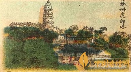 江蘇蘇州虎丘塔又稱(chēng)云巖寺塔,始建于公元959年。塔系平面八角形,七級(jí),是蘇州現(xiàn)存的最古老的一座佛塔,是古城蘇州的象征。畫(huà)面上虎丘塔高高聳立于景色幽雅的虎丘山巔上。