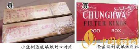如何從外觀識別二次粘封的假冒卷煙,筆者現(xiàn)將近期市場上查獲的二次粘封的假冒卷煙與真品卷煙的部分外觀特征進行差異化對比。(注:以下鑒定點非全部)
