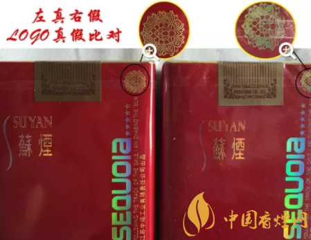 左邊的香煙煙盒是真的,蘇煙logo旁邊的字體色澤也是不一樣的,而右邊的香煙就是呈金色,顏色也沒(méi)有左邊的香煙那么醒目。