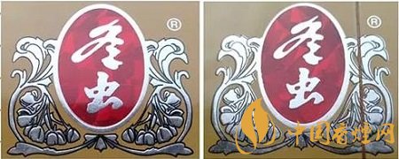真品卷煙商標(biāo)印刷采用“凹印”,兩種顏色交界邊緣呈現(xiàn)虛邊或鋸齒狀。假冒卷煙商標(biāo)印刷一般采用“膠印”,兩種顏色交界邊緣比較清晰、光滑,無(wú)鋸齒狀。(左真右假)