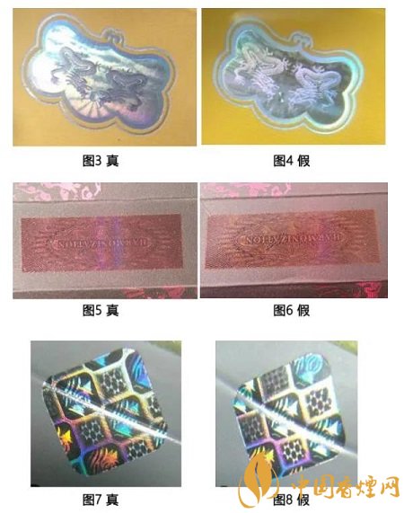 為了防范不法分子假冒而損害企業(yè)、消費者利益,卷煙生產(chǎn)企業(yè)采取了各種防偽技術(shù),并利用防偽技術(shù)來打擊假冒偽劣,整頓和規(guī)范市場,提升企業(yè)及其產(chǎn)品形象,是一種展示企業(yè)對消費者、對社會負(fù)責(zé)任的必須手段。卷煙防偽技術(shù)是綜合應(yīng)用現(xiàn)代科學(xué)理論與技術(shù),在產(chǎn)品的商標(biāo)標(biāo)識上制作具有高科技含量的圖案或信息,達到難以仿制的目的。目前卷煙行業(yè)應(yīng)用較多的防偽技術(shù)有激光全息防偽、彩色纖維、微縮印刷、變色油墨、超線防偽等等,且多種防偽技術(shù)結(jié)合應(yīng)用,科技含量高,制作工藝復(fù)雜,假冒煙極難仿制。早期偽造的防偽標(biāo)志粗糙容易識別,近些年,有些不法分子利用煙草行業(yè)防范疏漏,套取企業(yè)機密,部分假煙防偽制作逼真,難以確認(rèn)。例1:云煙(軟大重九)激光全息防偽,不同的角度呈現(xiàn)立體雕刻的雙龍、深度云層背景與動態(tài)光芒交替變換的效果(圖3),圖4假煙雙龍立體感也非常好;例2:白沙(和天下)超細線防偽,運用線條進行防偽,有豐富的曲線、粗細、陰陽線等變化,圖5、圖6真假難辨;例3:利群(新版)菱形圓角激光全息防偽標(biāo)志,標(biāo)志內(nèi)有廠徽及梅花圖案,在不同的角度擺動可見方形、橢圓形等多種幾何圖案,石塔下面有微縮防偽(廠長簽名),圖7、圖8亦是真假難辨。