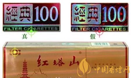 “紅塔山(硬經(jīng)典100)”是紅塔煙草(集團(tuán))有限責(zé)任公司出品的全國知名卷煙,深受廣大消費者的喜愛。為提高消費者和零售商戶對假冒卷煙的甄別能力,現(xiàn)將查繳的假冒“紅塔山(硬經(jīng)典100)”部分特征與真品卷煙相比較,對照圖片如下: