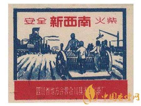 此后的50年代,地方國營宜賓市火柴廠出品的“耕牛”(圖2)火花,突出了一名少數(shù)民族農(nóng)夫右手扶犁,左手拿著牛鞭驅(qū)趕牛兒加油翻耕農(nóng)田的場景。