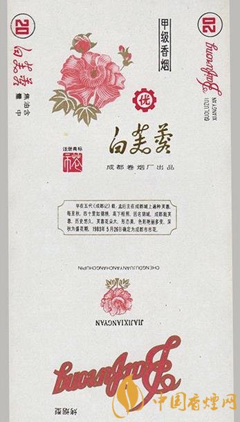 白芙蓉?zé)煒?biāo)(圖2)。芙蓉花一般在初冬開(kāi)放,它朝開(kāi)暮謝,早晨初開(kāi)花時(shí)為白色,至中午為粉紅色,下午又逐漸呈紅色,至深紅色則閉合凋謝。白芙蓉有清熱解毒、消腫排膿的功效,可用于癰癤疔瘡、無(wú)名腫毒、燒傷燙傷、跌打損傷等癥。上世紀(jì)80年代,成都卷煙廠出品“白芙蓉”煙標(biāo),該煙標(biāo)主版畫(huà)面白底上一朵碩大的粉紅色芙蓉花在綠葉的襯托下極其妍麗,旁邊伸展著三個(gè)蓓蕾,居中是金色的行書(shū)“白芙蓉”三字,下面是白芙蓉的知識(shí)介紹、歷史典故。副版畫(huà)面為一朵粉紅色的芙蓉花和芙蓉花三字紅色的拼音。