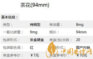 在了解了細(xì)支白盒茶花煙多少錢一包 之后,為了大家能更詳見的了解此煙,小編特意將茶花(94mm)香煙的核心參數(shù)進(jìn)行了整理,以便于對它進(jìn)行更深入的了解。