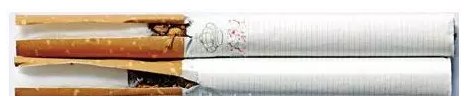 真煙煙支采用單一醋纖濾嘴,長(zhǎng)度為25mm;假煙煙支過(guò)濾嘴較短,長(zhǎng)度約為21mm,與真品特征存在明顯差異。