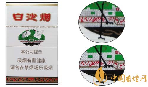 白沙(硬)因江南名泉式 ---“白沙古井”而得名,包裝以“白沙古井” 為背景,象征吉祥如意的雙鶴圖形為主體圖案。產(chǎn)品不斷應(yīng)用新技術(shù),科學(xué)配方,合理配香配料,口味特點(diǎn):煙香濃馥、諧調(diào),余味純正舒適?,F(xiàn)就該卷煙小盒鑒別方法介紹如下: