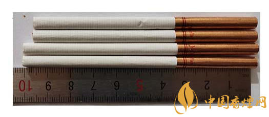 真品卷煙:煙支長度為100mm,濾嘴處有四排激光預(yù)打孔,打孔透氣度好。卷煙紙顏色白,手摸煙支飽滿緊實,搭扣處結(jié)合完美。煙絲呈現(xiàn)絲條狀,色澤基本一致。