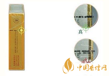 (2)看防偽標(biāo)記:條盒的正面芙蓉花防偽標(biāo)記,真煙的印刷在同一側(cè)面看到的只有一個(gè)圖樣;假煙的印刷在同一側(cè)面看到是幾個(gè)在一起的圖樣。