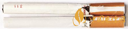 煙支過濾嘴及煙絲差異對(duì)比:真品煙支采用單一醋纖濾嘴,長(zhǎng)度為25mm,煙絲切絲寬度均勻,煙絲疏松、光澤油潤(rùn)性好、含碎末少。煙絲結(jié)構(gòu)為葉絲、膨脹葉絲、膨脹梗絲和再造煙葉;假煙煙支過濾嘴較短,長(zhǎng)度約為21mm,制絲工藝粗糙,光澤油潤(rùn)性差、煙絲中含碎末較多,大量梗絲未經(jīng)過膨脹處理,一般無(wú)膨脹葉絲和再造煙葉,與真品特征存在明顯差異。