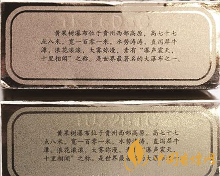 背面商標(biāo)紙印刷工藝差異對(duì)比:真品商標(biāo)紙采用銀卡紙,膠印印刷,背面鐳射防偽中圖案層次分明、瀑布立體感強(qiáng)、瀑布底部沒有明顯的黑色分割線;假煙背面鐳射防偽中圖案層次模糊、瀑布沒有立體感、瀑布底部有明顯的黑色分割線,商標(biāo)紙印刷工藝與真品特征存在明顯差異。