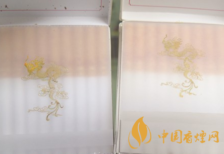 小盒商標(biāo)印刷工藝差異對比:真品小盒正面套印定位燙金“飛龍”圖案鱗片清晰,從頭至尾都能看到定位燙金工藝,紅色貫穿整個龍身,“鱗片”是雪里透紅,栩栩如生;假煙套印定位燙金仿制較差,鱗片無法達(dá)到真品的印刷工藝水平,印刷工藝與真品商標(biāo)圖案差異明顯。