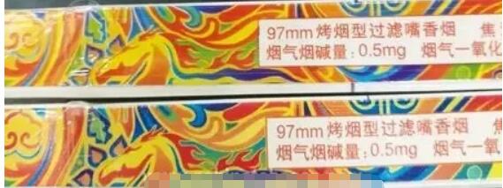 真煙藍色下邊是過渡的淡藍色,假煙無過渡色直接變成綠色。真煙中間為藍色,假煙全都是綠色。圖右側(cè)四個標(biāo)注處相同,真煙為藍色的三個圓珠,假煙為綠色的三個圓珠。