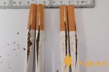 煙支降焦工藝差異對比:真品煙支采用25mm濾嘴棒長度,加長濾嘴棒長度能有效降低卷煙內(nèi)的焦油含量;假煙采用18mm濾嘴棒長度,無法達(dá)到有效降低焦油含量的作用,與真品煙支降焦工藝存在明顯差異。