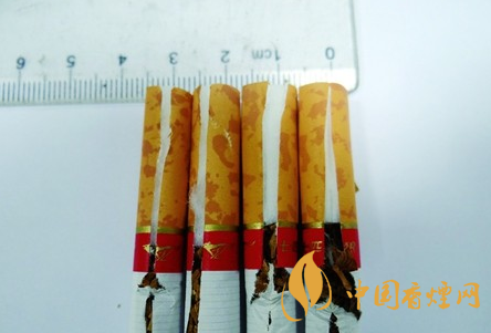 煙支濾棒長度差異比對:撕開接裝紙,真品煙支濾嘴棒長度大于2.5cm,濾嘴棒長度超出接裝紙金線圈部分;若不撕破接裝紙判斷時(shí),可用手輕捏濾棒長度是否與接裝紙紅色“奔狼”圖案平齊;假煙濾嘴棒長度小于2.5cm,不撕破接裝紙判斷時(shí),用手輕捏濾棒長度只到接裝紙金線圈處,與真品煙濾嘴棒長度差異明顯。