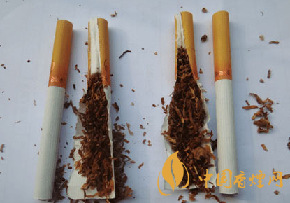 煙支及煙絲差異比對(duì):真品煙支加長濾棒用來降焦減害,煙絲配比及切絲寬度均勻,假煙煙支濾棒只有19mm,無法達(dá)到減害降焦作用,煙絲含梗末較多,與真品煙絲外觀特征存在明顯差異。